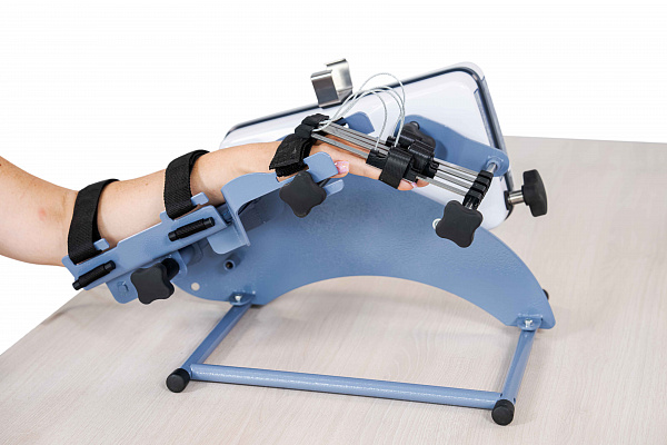 Специальные крепления позволяют зафиксировать как маленькую детскую руку, так и достаточно крупную у взрослого пациента. В процессе разработки крепления не вылетают, и разработка проходит максимально эффективно. При этом аппарат обеспечивает анатомически правильные движения благодаря точной биомеханике.